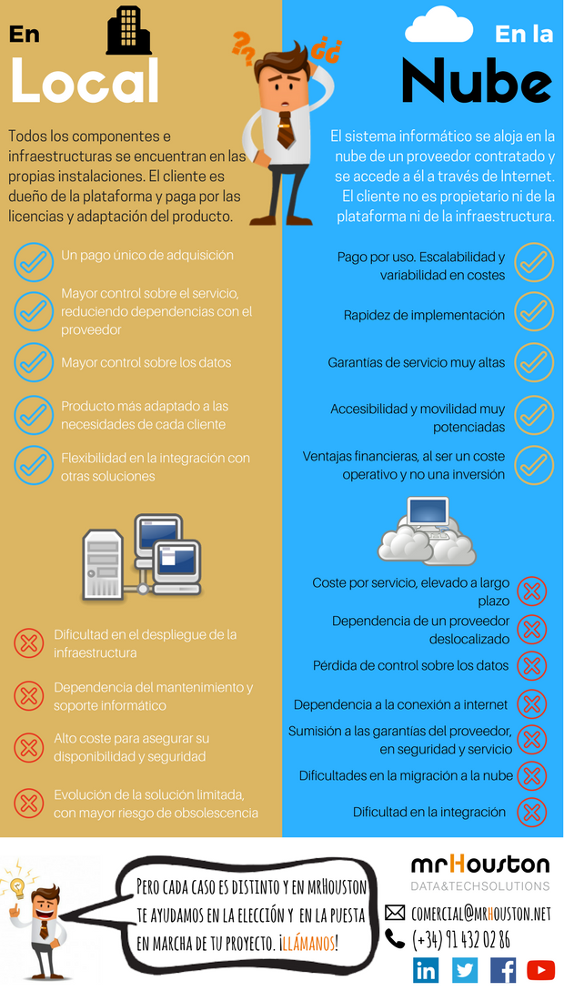Sabemos que cada caso es diferente y que la migración a la nube es una decisión complicada, ya que caben muchas opciones, por ejemplo, la más común, es escoger el modelo híbrido. Nos proponemos ayudarte a eliminar algunos mitos con esta infografía y a que tomes la decisión más adecuada a tu modelo de negocio. mrHouston te ayuda, tanto en la elección, como en el camino que escojas.